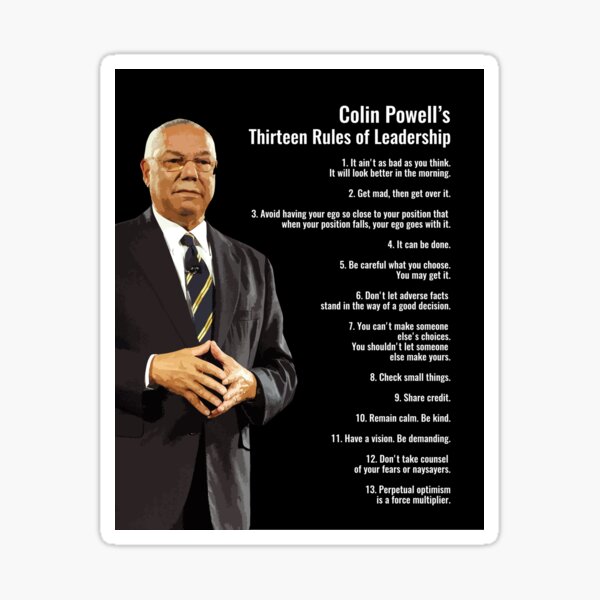 Colin Powell Thirteen Rules Of Leadership V2 Motivation Inspiration Us Secretary Of State Wall Art Print Sticker For Sale By Smashinginkster Redbubble